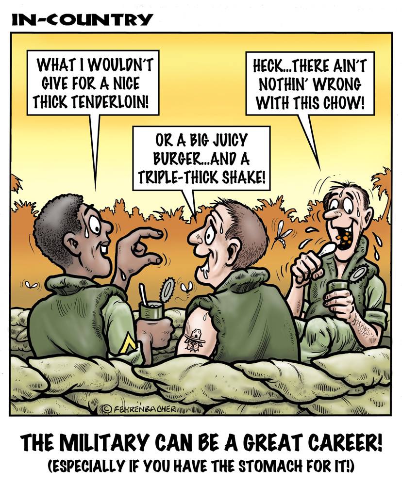 Phil enlisted in the Army in 1965 where he served for years in Vietnam. He became a graphic designer and has worked for the state of Oregon for 26 years. He retired in 2003 and started the Cartoon "In-Country". The cartoons reflect his experiences during his tour of duty in South Vietnam.