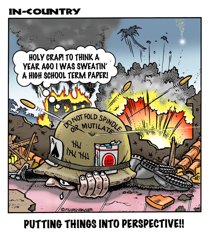 Phil enlisted in the Army in 1965 where he served for years in Vietnam.  He became a graphic designer and has worked for the state of Oregon for 26 years.  He retired in 2003 and started the Cartoon "In-Country".  The cartoons reflect his experiences during his tour of duty in South Vietnam.